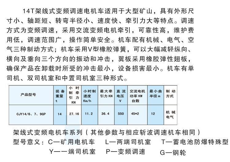 14T架線式變頻調(diào)速電機(jī)車